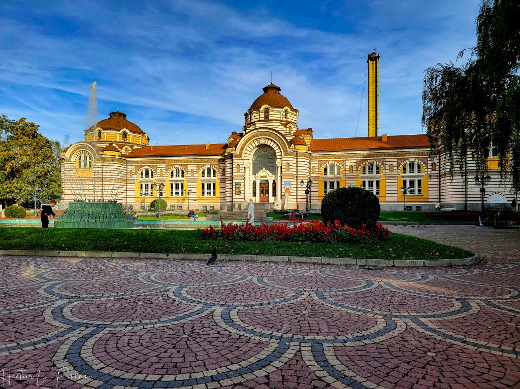 Make sure you stop by the strikingly striped Regional History Museum of Sofia. The museum is housed in what used to be the central mineral baths of the city and it is eye catching – you cannot miss it. The tiled sidewalks are so detailed and beautiful. You’ll also notice around the building that there are several water fountains where you can collect water or get a drink directly from the mineral springs running under Sofia. The water in Bulgaria was some of the most delicious I’ve ever had and is safe to drink.