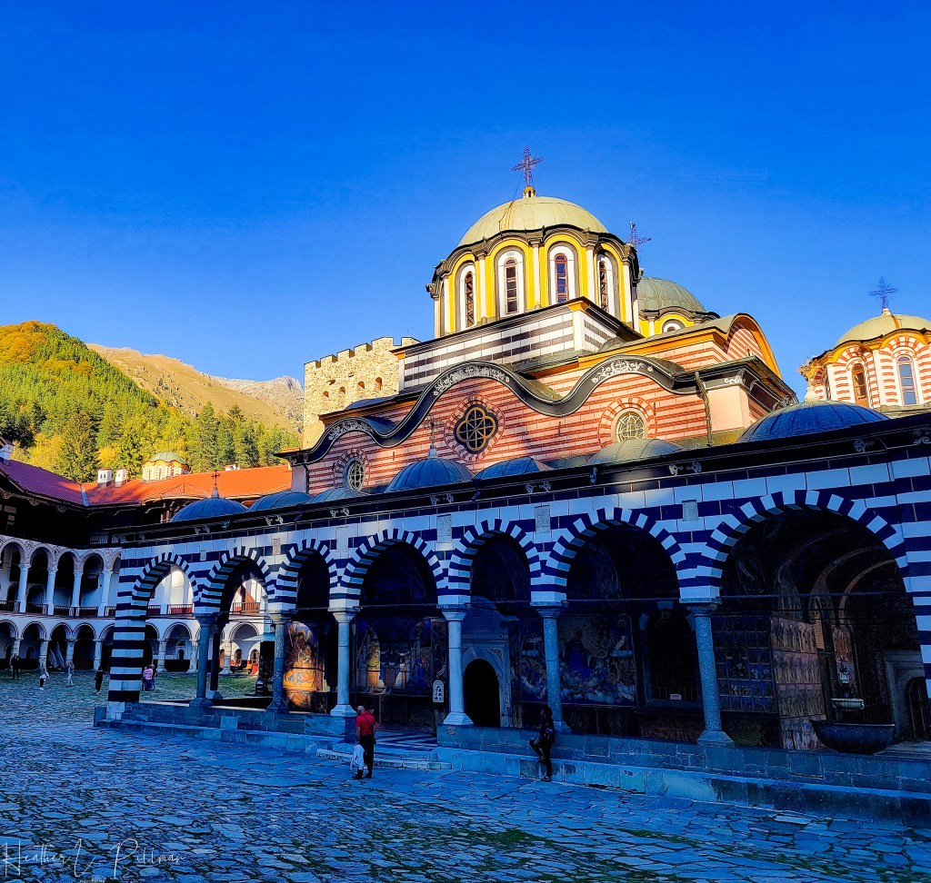 Whether you are religious or not, the Rila Monastery should be a stop on your trip to Bulgaria. I’ve never seen anything like it. Named for St. John of Rila, the monastery is breathtaking and is located in the mountains about 70 miles from Bulgaria. John of Rila, was a hermit in the Bulgarian mountains and it was his followers who established the site and monastery in Rila.