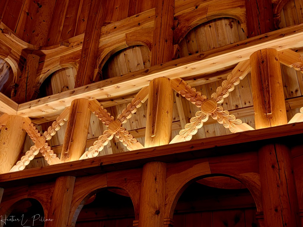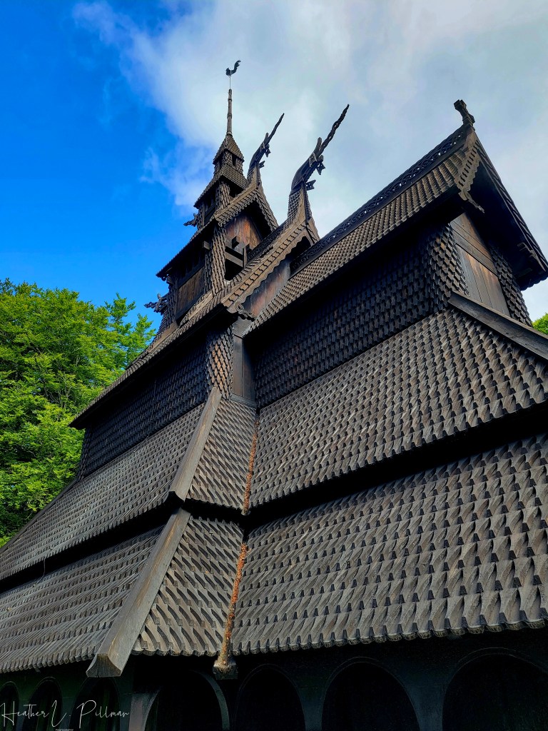 Upon seeing the church for the first time, it looked to me like something out of a fairytale or Harry Potter. The timber buildings are covered in tar to protect the wood, giving them a dark exterior. Dragons are carved into the wood and also appear on the rooflines. Very few of the churches remain. They are fantastical and eerie all at the same time on the outside and yet warm and almost welcoming on the inside with wooden beams and a simple altar. (Welcoming unless you were a person afflicted with an illness or pregnancy. If that was the case, you had to watch the service from the outside through a small window.)