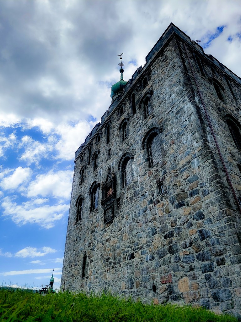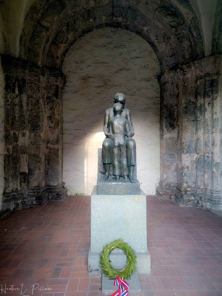 The colorful buildings, right on the water, are so charming. This area of town boasts many restaurants, shops, and other historic buildings and churches. We had a delightful lunch of traditional Norweigan sausage here served with carmelized onions and mashed peas (which was very common in Norway).